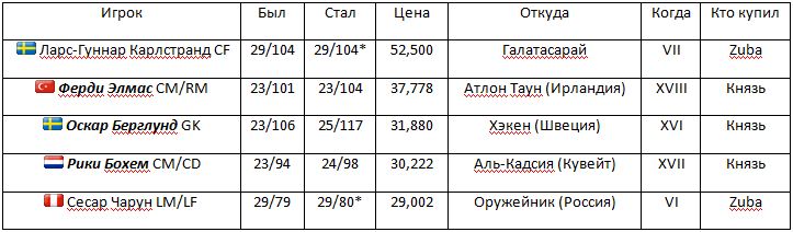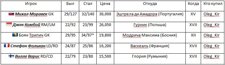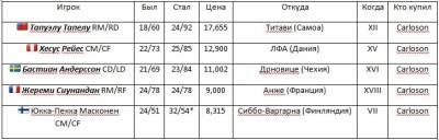 | Фенербахче * на момент ухода из клуба 1) швед поиграл в Турции менее сезона, но успел стать самым дорогим игроком в истории сразу двух клубов – Галатасарая и Фенербахче. В стане канареек он успел сыграть 4 матча и забить 1 гол. После этого – отбыл в швейцарский Локарно, как часть обменной сделки. 2) Игрок турецкой молодежки стал самым дорогим трансфером Фенера времен Князя. Как по мне – заплатили за него чересчур много, сейчас такие игроки стоят миллионов эдак на 10 меньше. Но рука не подымается написать, что этот трансфер был неудачным – в своем первом и пока единственном сезоне в Фенере Элмас сыграл 26 матчей, в которых забил 11 голов. Здесь он – лидер и игрок, вокруг которого строится вся игра команды. 3) Уже три сезона Берглунд – основной вратарь Фенербахче. Вопросов к нему нет никаких – играет он надежно и стабильно. Только вот если Фенер вдруг вздумает возродить свою былую славу, то вряд ли у шведа хватит на это силенок. Вратарь он неплохой, но до топ-уровня ему ну о-о-очень далеко. 4) Рики Бохем – один из нынешних лидеров Фенера. Толкового опорника Князь откопал на Ближнем Востоке, заплатив за него чуть больше 30 миллионов денег. Возможно, в Турции он смотрится не так ярко, как выглядел в Кувейте или Вьетнаме, но и уровень здесь все-таки повыше. На что-то большое и светлое голландец вряд ли способен, но для нынешнего Фенербахче – он незаменим. 5) Первое приобретение Фенербахче в новейшей истории Лиги. В Стамбуле его помнят разве что самые педантичные фанаты. За канареек сабж сыграл аж 11 матчей, забил 1 гол, после чего за 20 миллионов перебрался в Рому, где весьма неплохо себя проявил. На закате карьеры сыграл 4 матча за грозный Линкольн. Дарданелспор * на момент ухода из клуба 1) А кто-то сомневался? Гроза всех форвардов чемпионата Турции перешел в Дарданел перед самым выходом красно-белых в вышку. За словацкого ветерана Олег отдал ровно 30 миллионов и, думаю, ни на секунду не пожалел о потраченных деньгах. Михал Моравек полностью окупил затраты на себя любимого. Очень жаль, что закат его карьеры не за горами. 2) Молодой индонезиец – главный креативщик Дарданелспора. Комбой – лидер полузащиты и едва ли не единственный, кто может снабжать передачами грозных форвардов красно-белых. Заплатили за него немало, по игре – рассчитывали, наверное, на большее. В любом случае – появление игроков такого уровня в Дарданеле – лучшее доказательство развития клуба. 3) Предшественник великого Моравека – во многом именно благодаря Бояну Трипичу Дарданел смог стать одним из сильнейших в д-2 и выйти в вышку. В элитном дивизионе босниец тоже не затерялся и, когда было нужно, отлично подменял Моравека. После Дарданела были датский Фюн, перуанский Университарио. В этом Зимнем Кубке защищал ворота иранского Барга. 4) Француз был призвал укрепить оборону Дарданела – не все же на Моравека уповать. Но пока что у него в Турции ничего не получается. Во французском д-1 он и рейтинги хорошие имел, и плюсы часто получал, а здесь – пороблено. В любом случае, альтернативы ему на левом фланге защиты пока нет – так что играть ему в основе и дальше. 5) Основной правый защитник команды. В чем-то его судьба схожа с долей Фолькана – хорошо играл в Румынии, после перехода в Дарданел заметно сдал. Впрочем, на роль трансферного провала ни он, ни француз не тянут. Генчлербирлии * на момент ухода и